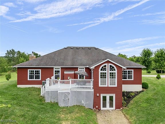 This stunning 3-bedroom, 2-bath ranch, built in 2010, offers nearly 4,000 sq. ft. of finished living space that perfectly blends modern comfort with country charm. Start your mornings in the sun-filled sunroom overlooking serene ponds, wooded acreage, and your very own fruit trees, grape arbor, and gardens. Inside, a cozy gas fireplace anchors the inviting living area, while the spacious kitchen is ideal for family meals and entertaining. The finished walk-out basement, complete with a wood-burning stove, provides endless possibilities for a home theater, game room, or guest suite. Step outside to explore three stocked ponds, wooded trails, and open spaces for play, gardening, or quiet reflection. The versatile outbuilding can be used as a workshop, sports area for the kids, or transformed into your own custom space. With modern amenities, expansive outdoor living, and privacy just minutes from local conveniences, this property is more than a home—it’s a lifestyle. Schedule your private tour today and experience it for yourself!