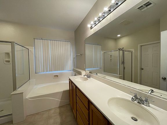 Low-maintenance desert landscapingDual sinksLarge covered patioPrivate primary suiteModern kitchenSeparate showerExpansive great room