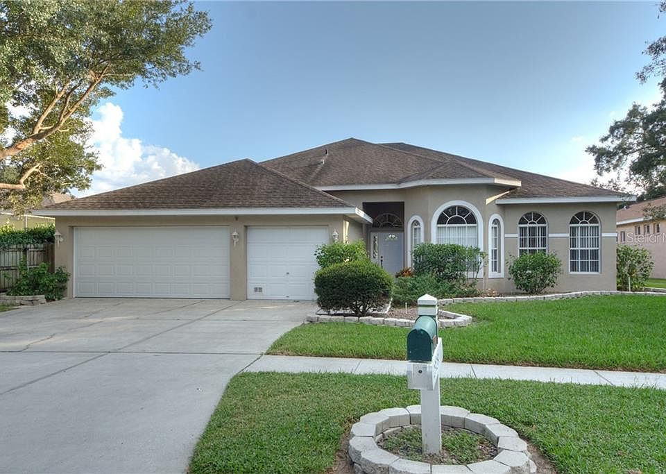 4BD 3 1/2BA 3-CAR GARAGE w/ Pool located in Brandon. The home has lots of windows, with a FRESH painted full exterior 2019, and mature landscaping throughout yard. Roof new in 2016, 2019 50 gal water heater and newer high-efficiency A/C with moisture resistant duct work installed. Stone counter-tops, breakfast bar and NEW 2019 stainless appliances including a Double Oven, and an over-sized built-in Microwave, all enclosed in a bright and light kitchen. Open floor plan, split bedroom plan and a bonus room leading out to the spacious spa-like pool area. In-ground heated Pool is saltwater spa with a new liner installed in 2016 with a 30-yr guarantee and an adjoining hot tub that overflows via waterfall effect into the pool. Views of the pool and Lanai area are hard to miss with all the sliding doors that open the entire back L-shape of house and create additional usable living space with a large Lanai. Laminate wood-look floors in main living area with clean ceramic tile in the entryway and kitchen. The excess storage includes full overhead in garage with 2 entrances and lighting. All new modern ceiling fans mostly with remotes. Fully updated bathrooms with motion lights. Enjoy music and audio from a 3-zone audio wiring in living room, lanai and garage, all from one central location. Over-sized fenced yard is overlooking the Pond with fountain feature. Close to shopping and movie theater. MOVE IN READY!