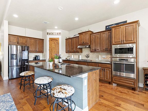 This spacious single-story home features an ideal layout with a dedicated study/home office providing the perfect workspace or flex room. The heart of the home is the open-concept kitchen, complete with a large island, walk-in pantry, and ample cabinetry — all flowing seamlessly into the expansive family room with high ceilings and a cozy fireplace. The primary suite includes a luxurious en-suite bath with double sinks, a soaking tub, and a separate shower. It also boasts two large his-and-hers walk-in closets, offering ample space and organization. Interior upgrades include hand-scraped hardwood flooring, brand new carpet in all bedrooms and the study, and fresh paint throughout the entire interior and exterior, making this home truly move-in ready. Step outside to enjoy your covered patio and extended porch, or take advantage of neighborhood amenities such as parks, playgrounds, picnic areas, and sports courts.