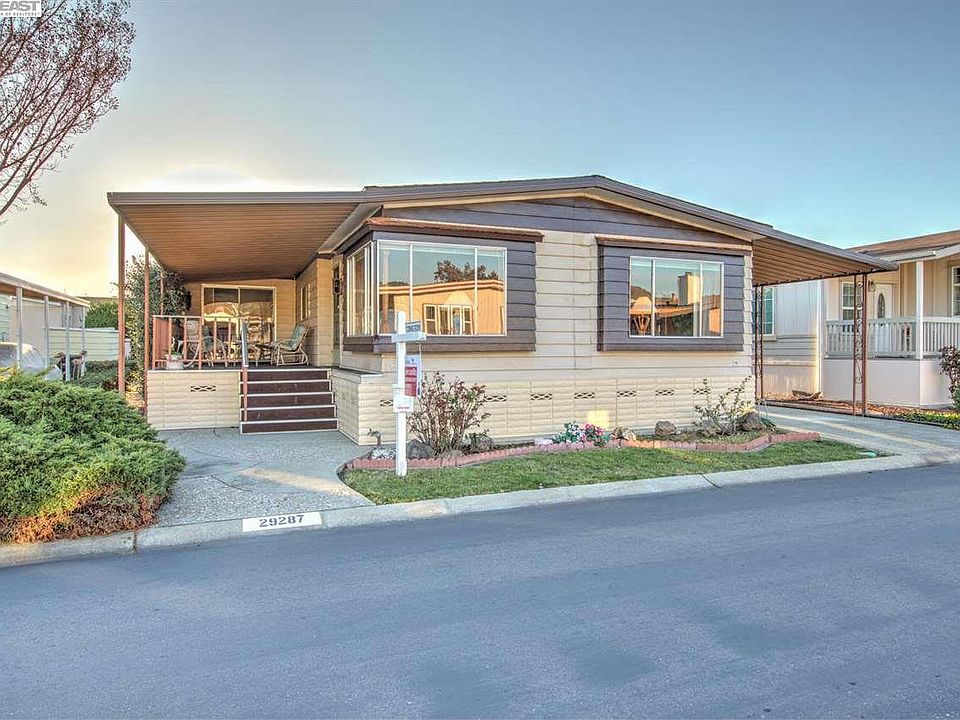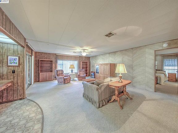 * Spacious home, 1700 sq. feet (approx) 2 bedrooms, 2 bathrooms, plus office off Master Suite, Walk-in closet. Open floor plan, vaulted ceilings, indoor laundry, storage, built in desk, master bath with double sinks, soaking tub & separate shower, 2 sheds, wheel chair lift. Under Hayward Rent Control. Senior Park 1 person must be 55+, additional occupant/s must be 18+. Gross income is 3x space rent + mortgage (if any). One Pet allowed, size restrictions.