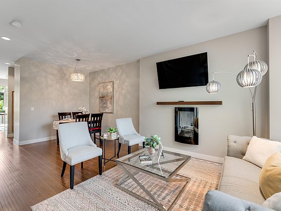 Bright 2-bed + den townhome with sunny south-facing yard backing onto greenbelt—no neighbours front or back! Sleek kitchen with gas range, stone counters, and quality finishes. Cozy fireplace, powder on main, BBQ gas hookup, and community garden access. Spacious primary with California closets, radiant in-floor heating, and large ensuite. Den with built-ins, plus rare 3rd parking spot. Quiet street, steps to Morgan Crossing shops & dining.