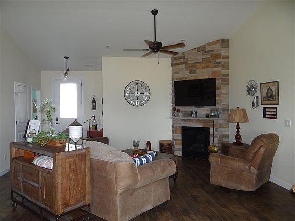 Get in quick to see this impeccably kept home with loads of upgrades and additions. 1868 square feet with 4 bedrooms, 2 baths, and a 3 car garage. Step in to see a beautiful living area with a gas fireplace, a custom kitchen with a gas range and large granite island, and granite countertops throughout. Refrigerated central air, tiled bathrooms and showers, surround sound, and added outlets in and out for the decorator! Newly covered extended patio and water-free grass in backyard with filtration system. Backs to open space!