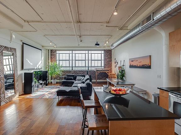 The interior of this loft captures the spirit of modern living while preserving its timeless appeal. Elegant hardwood floors complement the abundant natural light that streams through expansive windows, working in harmony with the high ceilings to create a warm, inviting atmosphere. The kitchen, a true culinary haven, is equipped with updated stainless steel appliances, including a desirable double oven and a functional center island, making it a pleasure to cook and entertain.