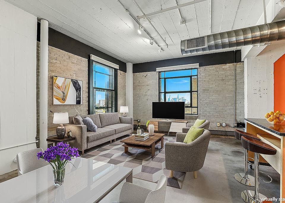 Moveable center islandLvp flooringSweeping downtown skyline viewsHigh ceilingsOpen floorplanSolid interior doorsFlex space