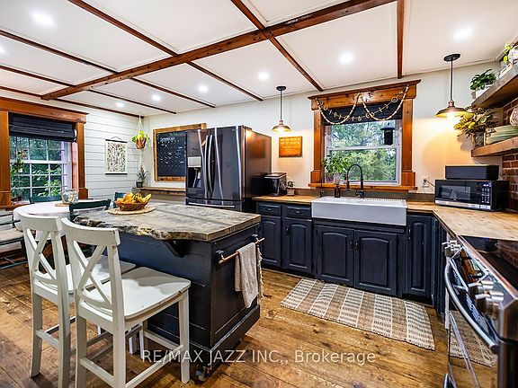 Welcome to this charming 1 3/4-storey home, a perfect blend of character, comfort, and modern updates. Set on a spacious, picturesque lot, this property offers 3 generous bedrooms and 2 full bathrooms, making it an ideal choice for families, first-time buyers, or anyone looking for a peaceful retreat. From the moment you arrive, you'll appreciate the steel roof with dark siding that enhances curb appeal while ensuring lasting durability. Step inside to find a warm and inviting living space highlighted by a cozy wood stove perfect for relaxing evenings. The thoughtfully designed kitchen provides plenty of workspace and a central island, making family meals and entertaining a pleasure. The main floor features a private primary bedroom/office, offering convenience and separation from the upper level bedrooms. Outdoors, the large front deck is the perfect spot to unwind and watch the sunset, while the expansive yard (nearly an acres) provides endless possibilities gardening, children's play, or simply enjoying the fresh air. This property also comes with extras that make it truly move-in ready, including appliances (dishwasher as-is), a kids playhouse, and even a chicken coop for those who dream of a touch of country living. With a fantastic layout, abundant outdoor space, and a balance of character and updates, this home is ready to welcome its next owners.