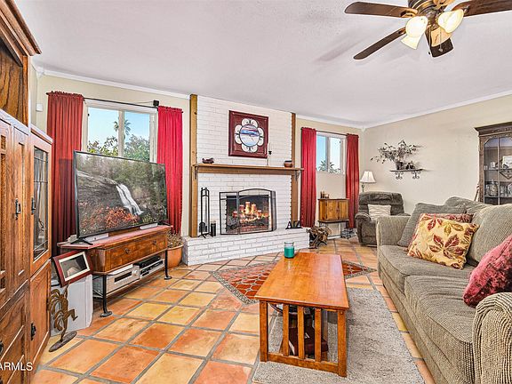This amazing home has it all! The open floorplan flows easily from the living room with a fireplace, dining, to the kitchen with a high end gas range. The spacious downstairs bedroom and bath are separate from the upstairs 2 bedrooms & bath- creating a perfect private guest suite. The French doors open from the kitchen & dining area to the spectacular oversized backyard featuring a large covered patio, refreshing saltwater pool and above ground spa, outdoor fireplace, Tuff Shed workshop w/electrical, RV gate & parking, beautiful landscaping, and spectacular mountain views. It's an entertainer's dream! OWNED solar was installed in 2017 for extra energy efficiency. The 2 car garage, corner lot, and excellent location are among the many things that make this home truly remarkable!