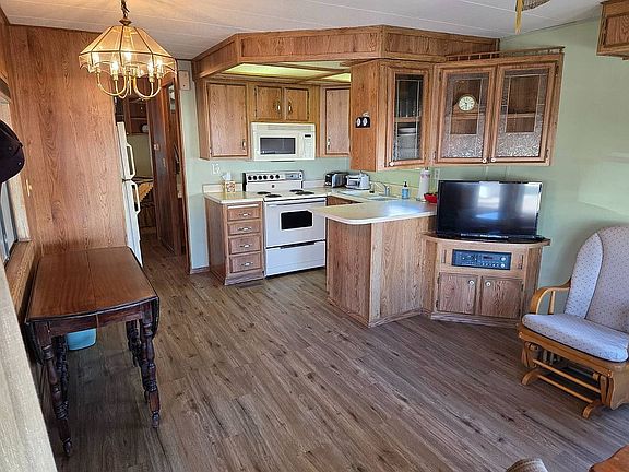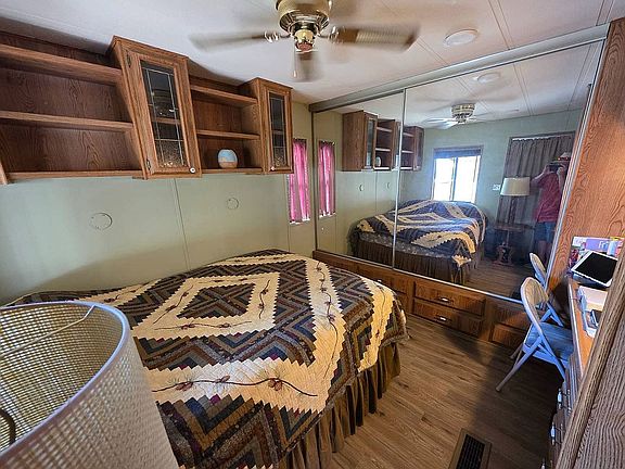 1987 new vinyl plank flooring, new interior paint, new toilet, all new insulated light blocking window shades. Large covered carport. Lockable storage shed. Very clean, quiet park with 2 pools, tennis, pickle ball, 2 club houses, many activities, affordable yearly lot rent.