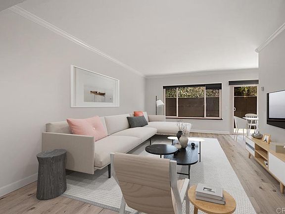 UPGRADED! Enjoy coastal breezes in this move-in ready condo in the Fire Mountain community! One of the larger 1st-floor units, boasting 2 BD, 1BA, and 1,015 sqft. The galley-style kitchen features new shaker-style cabinets, quartz countertops, stainless steel appliances, a gas stove, and an eating area. Vinyl plank flooring and crown molding throughout. Craftsman-style baseboards. Dual pain windows. Shaker-style bathroom vanity with granite countertop. Each bedroom has walk-in closets. Enjoy a private spacious outdoor patio/yard. 2 parking spaces (carport with storage and 1 uncovered space). Steps to the laundry facility. The community features a gated community pool. The location is surrounded by great restaurants, endless shopping opportunities, only 3.5 mi from the beach, with easy access to the freeways.