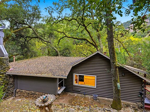 Charming cabin in a quiet secluded setting, the perfect spot to get away from it all. Spend quiet, private time relaxing on the new deck which overlooks a seasonal creek. This Amazing home features beautiful hardwood floors throughout, dual pane windows, dual ovens, gas range, and a stone fireplace, beautifully updated main bathroom, new paint, bright family and dining rooms include full walls of windows for great sunlight and views! Parking for 4 cars in your private driveway.