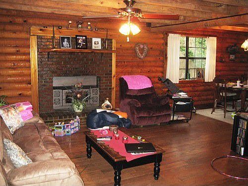 Wonderful Log Cabin home set back in a beautifully wooded 3.02 acres. As you enter up the curvy paved drive to this lovely home you'll notice the spacious covered front porch that covers the entire length of the home. Entering into the living room you'll notice the aged brick fireplace and spacious dining area. The Kitchen features a bay window that could be an excellent eat-in kitchen area with a wonderful view of the back yard. The HUGE master bedroom features an updated bath room with lo...