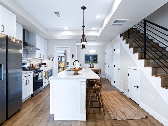 This townhome is complete with everything you need. The main floor has an open floorplan with a large living area, a kitchen complete with Quartz countertops, stainless steel appliances, gas stove, and bathroom. The second floor primary bedroom includes a walk-in closet with ample storage and a bathroom with a tiled walk-in shower and double vanity sinks. The third floor second bedroom is curently set-up as an office with a sit/stand desk.