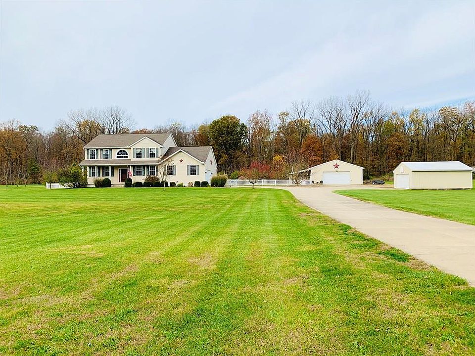 10 ACRES-5 wooded! Tons of garage space! 2 car attached garage, 24x22 detached garage, and 30x40 pole barn! Beautiful outdoor living space! Huge front porch and a wonderful large covered paver patio in the back looking at the private wooded lot. The house itself has just shy of 2700 square feet of living space not including the full basement. Northwestern Schools!