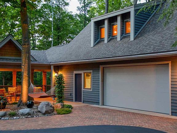 Old Mission Peninsula living at it's finest. East Bay access compliments this tastefully remodeled, craftsman-style home nestled in a quiet wooded acre lot in the The Bluffs neighborhood. Unique interior boasts a custom chef's kitchen with Wolf appliances, custom cabinetry, quartz tops, Sub Zero fridge, and 2 additional beverage coolers. Other fabulous features include; Private master suite w/ fireplace, giant walk-in closet complete w/ extra washer & dryer, & bathroom w/ double vanity and custom heated tile work; European white oak hardwood flooring; custom hardwood staircases; solid wood doors & custom trim. Beautiful low maintenance landscaping compliments the gorgeous outdoor space which showcases 3500+sq/ft of deck & patio space. This is truly an entertainers dream come true! In addition to the main house, a carriage house with additional 2-car garage is perfect for home office, studio, or guest space. Enjoy shared East Grand Traverse Bay beach access w/boat station, tennis courts & walking trails as part of The Bluffs neighborhood. Near wineries & less than 10 minutes to downtown TC. Click on virtual tour link for an incredibly realistic view of the interior!