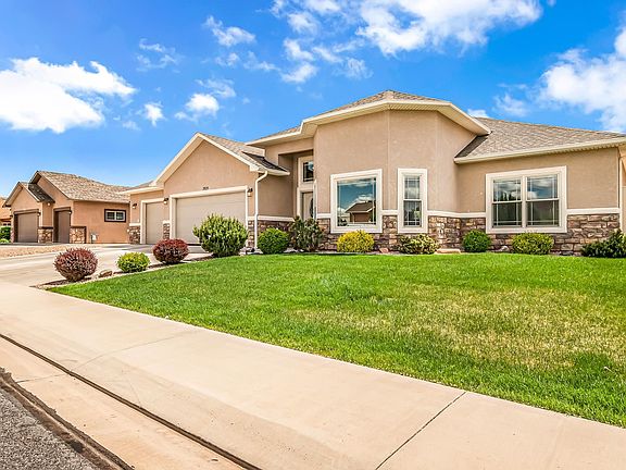 Gorgeous, large stucco ranch home that includes many classical home features such as a welcoming entry, large master bathtub and formal dining room, while still having an open concept and split bedrooms. House features a beautifully landscaped backyard that includes RV parking and matching stucco shed. Back patio has a gas line and 220 for that future hot tub. Conveniently located a minute from 29 Road just across the River. You get the best of both worlds, elevated views and just minutes from shopping. The large front room is a blank canvas that could easily be used as an office, formal dining, playroom or even easily converted into a 4th bedroom!