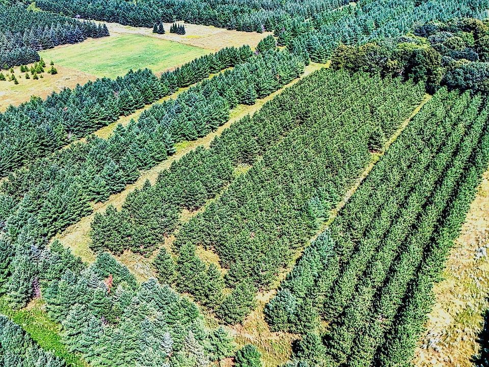The land features flat, accessible terrain perfect for constructing a home, cabin, or getaway, surrounded by mature pines and natural beauty.