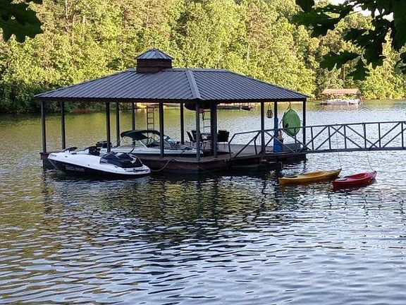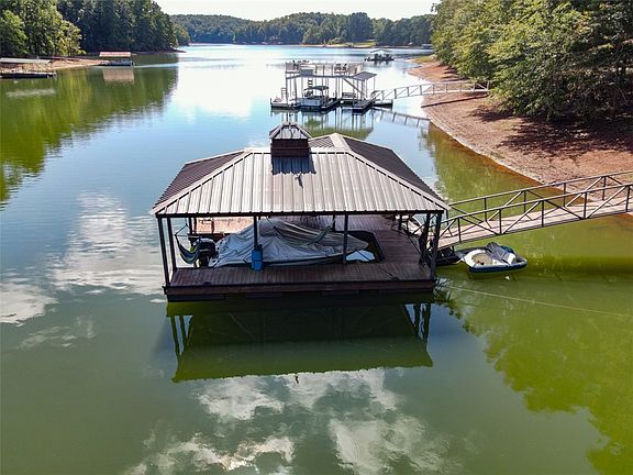 PRICE REDUCTION $285,000!! LAKE HARTWELL- LAKEFRONT LOT WITH DEEP WATER AND 170 LAKE FRONTAGE ON .57 ACRES. SHORT CORP LINE AND NO HOA. INCLUDES A KROEGER MARINE BRAND DOCK WITH IRONWOOD DECKING AND LARGE HIP ROOF COVERED SLIP. LOCATED ON A QUIET DEAD END CUL DE SAC WITH FRAMED IN 20x50 BOAT STORAGE OR OVERSIZED GARAGE. PERC TEST HAS BEEN APPROVED FOR A 2-4 BEDROOM HOME AND POWER AND WATER TAP IS IN PLACE. (SEE ATTACHED PERMITS IN SUPPLEMENTS) HAS A WORKSHOP WITH ITS OWN ELECTRICAL BOX. A GRAVEL CIRCLE DRIVEWAY AND CLEAR, GENTLE SLOPE LEADING FROM STREET AND HOMESITE TO THE DOCK. THE BUILD SITE HAS BEEN CLEARED AND ROUGH GRADE, MINIMUM SIZE HOME IS 900 SQ FT WITH WALKOUT BASEMENT. NO MOBILES ALLOWED.