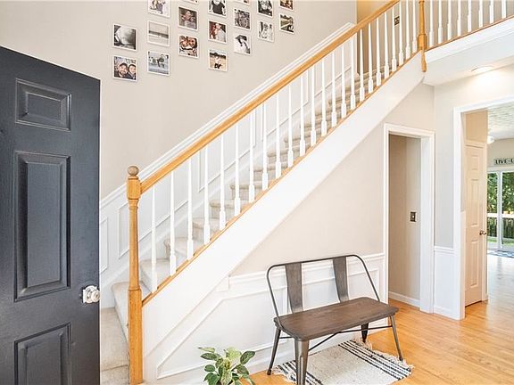 OVER 2,500 sq ft of living area in CASTLE ROCKS! This beautiful home will surpass all your expectations! The unique open floor plan allows you and your company to traverse from room to room with ease! Architectural details can be found throughout the home by way of crown moldings, chair rails, picture frame moldings, and well appointment wood columns. Tray ceilings adorn the master bedroom which includes an oversized private bathroom with a relaxing soaking tub! Spacious kitchen with granite countertops and stainless steel appliance will lead you to the sliding doors to the back deck overlooking a tranquil yard. Marble fireplace with large tasteful mantel, Hardwood floors, 9 Ft Ceilings, Two story foyer, 2nd floor laundry, ONE YEAR old roof! Conveniently located to all amenities including downtown East Greenwich nestled on a nicely manicured "premium lot"!