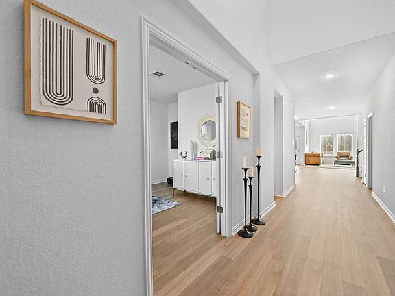 You’ve dreamed of a home that feels grand the moment you walk through the door — one with soaring ceilings, sun-filled spaces, & a kitchen that draws everyone together. That dream becomes reality here. With 3,050 sqft of living space, this remarkable residence blends modern elegance with everyday warmth, thoughtfully designed at every corner to make life both beautiful & effortless. Step inside to an open, light-filled living space where luxury vinyl plank floors stretch beneath towering ceilings. Sunlight dances across the room through oversized windows, while the living & dining areas flow seamlessly together, perfect for cozy nights or lively gatherings. At the heart of it all, the gourmet kitchen brings everyone together — with expansive counters, abundant cabinetry, & high-end finishes that make both cooking & entertaining a pleasure. Your primary suite on the main level offers a peaceful escape, with a spa-inspired bath featuring a soaking tub, walk-in shower, & a generous walk-in closet. A private home office with elegant double doors & a well-planned laundry room add thoughtful touches that make everyday living easier. Upstairs, a versatile loft offers space for laughter, creativity, or quiet retreat, surrounded by 3 spacious bedrooms filled with natural light. Outside, the covered patio and fully fenced backyard invite you to unwind, entertain, or simply watch the sunset in comfort & privacy. Located in the vibrant Sunfield community, residents enjoy unparalleled resort-style amenities, including an elementary school, walking trails, fishing ponds, on-site lifestyle activities coordinator, open-air pavilions, a splash park, a junior-size Olympic swimming pool, & two lazy rivers. Sunfield’s prime location offers unbeatable convenience too! Just 3 minutes to IH-35, 5 minutes to the 130 toll road, & mere moments from premier shopping, dining, & everyday essentials. Don’t just dream of the good life—live it here!