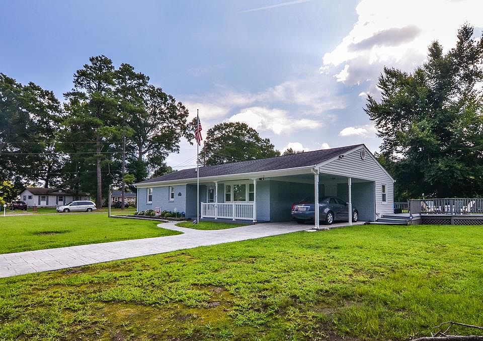 Your New Happy Place! One-story 3 bedroom home on .62 acre corner lot! Covered parking for your cars & boats, garage for golf cart & workshop, stamped concrete driveway & walks. Spacious back decking. Renovated bath, walk-in jetted tub. Potomac River access via Mattox Creek. Vol HOA w/boat ramp, clubhouse in golf cart community. Public water/sewer. Move-in ready w/ furnishings available. Great buy!