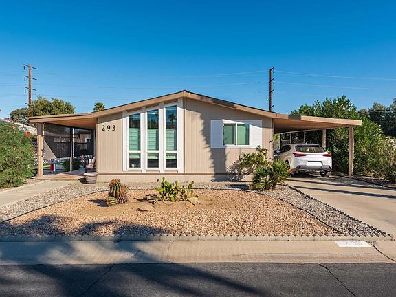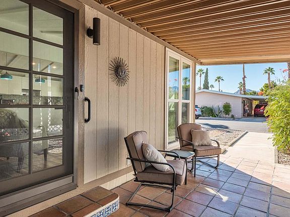 Welcome to The Canyon, the Premier Mobile Home Park in the Valley. This 2BD/2BA unit has been updated with Dual Pane Windows, newer PEX Plumbing and Electrical Upgrades. There is warm and welcoming wood vinyl flooring throughout, with tile in the bathrooms. There is a nice outdoor patio as you enter the front door leading to an open area concept with Living Room, Kitchen and Dining Room. The Kitchen features a Large Island or Workspace along with Quartz & Butcher Block Counters. Wonderful top-down and bottom-up window coverings to enhance the view of the Mountains yet offer privacy when needed. The generous Primary Suite has a walk in closet with updated bath and step in shower. The guest bedroom has a hall bath which has also been updated. There is a great Bonus Utility room with extra storage, a large sink and full-sized Washer and Dryer. This home has been well maintained with 3 Zones of Heat/Pump and Mini Splits with remotes. There is a newer Tankless water heater and upgraded paint inside and out. The Canyon is centrally located in the Valley and has easy Freeway access on Gene Autry Trail or Date Palm Dr. We are near shopping, entertainment, PS Int'l Airport and 10-12 Min. to Downtown Palm Springs! The Canyon features only Full-Time Residence or Second Homes. We have wonderful park like greenbelt grounds with Tennis & Pickleball. Our clubhouse boasts an upgraded Banquet Hall, Gym, Card Room, Billards and Library along with 4 Enclosed Heated and Cooled Shuffleboard Lanes, Two pools and a Spa. You will need to qualify as a resident with 3 times space rent $950 = $2850 along with a FICO score of 750. One domestic animal of 20 lbs unless it is a Service Dog. The Canyon is the place to be for 55+ Adult Lifestyle Living. Make an OFFER Today!!