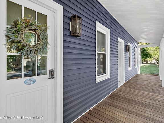 Perfectly situated on the main street of vibrant Rosendale, backing onto the Rondout Creek and just minutes from New Paltz and Kingston. This completely updated 2 bedroom, 2 level unit is move in ready. The home comes fully furnished with stylish and yet practical pieces, including large dining room table, cozy couch and wall mounted TV. The kitchen is open concept with bright, clean finishes including stone countertops and Stainless Steel appliances. Upstairs you will find two chic bedrooms with Queen size beds. A spacious bathroom features a modern dbl vanity and shower/tub combo with gorgeous tile detail. The entire home has an abundance of windows allowing natural light to pour in and brighten the space. Ductless mini splits help cool the home in the warmer months. Outside enjoy sitting on the front porch or back deck. This home is a great option for those looking to be close to restaurants, shops, public transportation and a long list of exciting outdoor activities.
