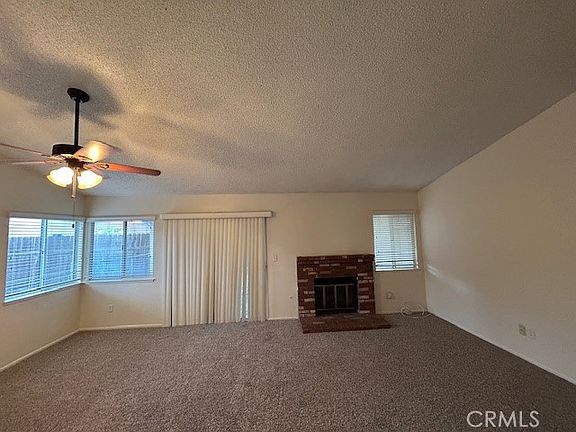 House on cul-de-sac with RV access. NEW CARPET and INTERIOR/EXTERIOR PAINT! Flowing floor plan includes living room, family room with brick fireplace and dining area with ceiling fan and slider to backyard covered patio. Kitchen with breakfast bar open to dining area. Bedrooms with ceiling fans. Primary bedroom has slider to backyard covered patio. Indoor laundry in additional BONUS ROOM that leads to garage.