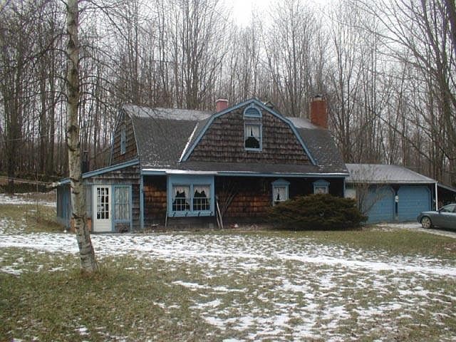 Nice private setting set on 30 + acres of great deer hunting property. Rustic Cape with 3 BR & 1 Bath, kitchen w/dining room, living rm and office area off 2 car attached garage. Beautiful yard with several out bldgs. Criss crossed with stonewalls, blueberry bushes and more. Includes a cement block work shop along road.
