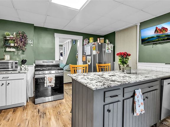 Beautifully updated home in the Depew School District featuring new flooring throughout, freshly painted exterior and a newly sealed driveway. The updated kitchen offers granite countertops and modern cabinetry. Brand-new master bathroom with stylish tile work. Furnace and hot water tank replaced in 2019. The attic provides tons of additional finished space not included in the square footage—perfect for storage, office, or a bonus room. Enjoy the private backyard with a custom-built bar, ideal for entertaining. Move-in ready with tasteful updates throughout! Showings begin Saturday, October 25th at the open house — join us from 11:00 AM to 1:00 PM, or Wednesday, October 29th from 5:00 PM to 7:00 PM.