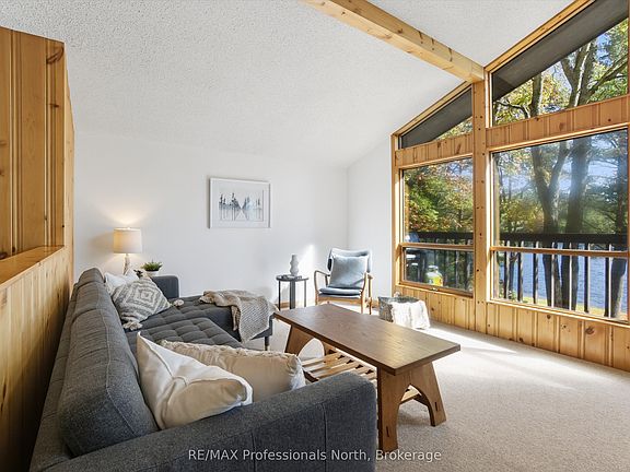 Your Year-Round Lakeside Escape Awaits! Imagine waking up to the sparkle of the lake, coffee in hand, as the sun streams through the wall of windows in your vaulted great room. This 3+2 bedroom, 2-bath home has everything you need to relax, recharge, and make memories in every season. Set on a large, level lot, this retreat offers privacy, space, and endless possibilities. Kids can run barefoot on the grass and right into the shallow waterfront all within view of the cottage. Friends can gather around the fire pit, and everyone will want to linger on the spacious deck overlooking those wide, open water views. The layout is ideal for families and guests: three bedrooms, including the primary, are conveniently located on the main floor, while the fourth bedroom and an extra flex room are tucked away on the walkout lower level. The basement also features a big rec room, laundry area, and a patio that's perfect for shady afternoons. Outside, the property is designed for easy access and convenience with two driveways and plenty of room to create a circular drive-in/drive-out loop, making it simple to pull in with vehicles, trailers, or boats. The additional back lot provides extra acreage for added privacy. An extra outbuilding sits waiting to be reimagined into guest space, a creative studio, or a kids hideaway. When the seasons change, the fun doesn't stop! In winter, you have snowmobile and snowshoeing trails right at your fingertips, with cozy evenings by the fire to warm up afterward. This is a true four-season getaway or year-round home. Practical touches make year-round living easy: a drilled well, plenty of storage in the double car garage, and it's less than 15 minutes to downtown Huntsville for anything you need. This is more than a cottage; it's a place where weekends turn into long summers, winters are full of adventure, and family memories last a lifetime. Bring your family, your friends, your ideas and get ready to fall in love with lakeside living.