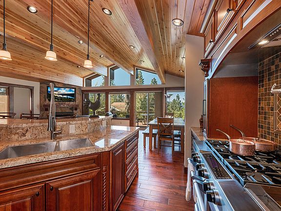 Beautifully remodeled, turn key, lake view home in Zephyr Heights. High quality finishes thought-out the home will be sure to impress. With level entry and master bathroom on main level, featuring vaulted wood beam ceiling, walk in closet, with a luxurious bathroom with beautiful wood cabinetry, heated soaking tub, walk in closet with body sprayers and dual shower heads, double sinks and private deck. The great room has vaulted open wood beam ceilings, a Quartzite gas log fireplace with built-in LED TV, and access to a spacious, sul-filled composite back deck with glass railings with lake views and sunsets. The open, state of the art kitchen features granite counters, all stainless steel appliances, including a Kitchen Aid commercial style gas range, Viking micro / convection oven, a 52 bottle wine fridge, with beautiful wood cabinetry throughout. The lower level has a huge family room with a gas log fireplace, second luxurious kitchen, all with a separate entrance, that could be used as a possible in-law quarters, or 4th bedroom. There are two other bedrooms, both with deck access, and two luxurious baths downstairs as well. All three bathrooms have TV's and radiant floor heat. Off the lower family room is a spacious and bar set up. Other features include hand-scraped African walnut plank wood flooring, solid wood doors, and blinds throughout. There's also a Nest system, sun shades in living room, metal roof, and a professionally landscaped front and back yard with 35 new trees and 50 shrubs, full sprinkler system and fenced back yard. Added bonus the BMP's are done. Note the custom bed and bedroom set in master bedroom and custom copper dining room table. This home will be sure to impress. Located just 5 minutes to all the casino action and 10 minutes to Heavenly Valley Ski Resort.