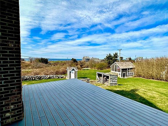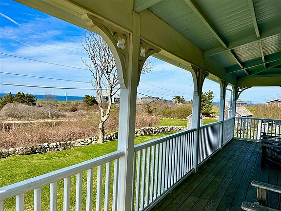 This Block Island Farm House is in a great location - less than a mile to Old Harbor and the Mohegan Bluffs, and a short walk to Pebbly Beach. Originally built in 1860, and completely renovated in the mid 1990's, with many updates since, the house and outbuildings are in terrific condition. There are fabulous ocean views in two directions, and at night the sound of the surf will lull you to sleep. The main part of the house has four bedrooms, two baths, a large farmhouse kitchen and extensive wrap around covered porch. The rear of the house contains an adorable, light filled one bedroom, two bath apartment with kitchen, living area with wood stove, a loft and private deck. The 32,600 sq ft lot has ample lawn area, two sweet outbuildings and pretty stone walls. The two legal dwelling units offer many options to a buyer with out the common town restrictions: rent both units separately or together, live in one, rent the other, enjoy the whole house as a five bedroom, four bath dwelling, or save the apartment for guests.Total square footage of the building is approximately 3106 sf.