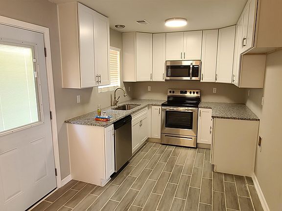 Single car garageMaster has two closetsTile flooringNice size eat-in kitchenRange dishwasher microwave refrigeratorUpdated bathroomsCarpet in bedrooms