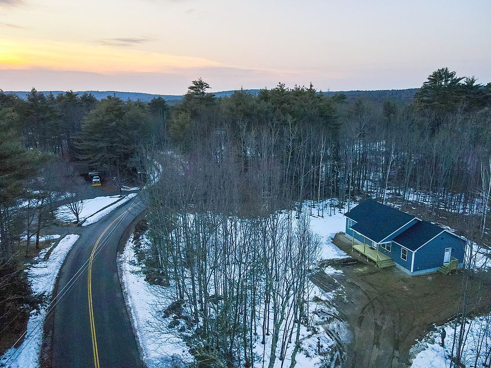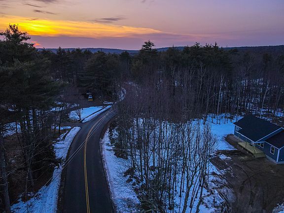 The road is called Sunset Road for a reason! Enjoy the amazing sunsets everyday from the front farmers porch of this brand new home on a beautiful rural Springvale lot. This ranch has a great open concept floor plan with cathedral ceiling in the kitchen, living and dining area and as well as a primary en suite with a walk in closet and full bath. The kitchen has nice solid wood cabinetry with granite counters and the flooring throughout the house is solid vinyl planking.