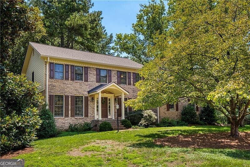 Set on a peaceful acre in the heart of Roswell, this well-built freshly painted 2-story home has been lovingly maintained since 1980, offering original finishes, a traditional layout, and a peaceful setting with a strong connection to nature. A new covered portico leads to the front entry, where the foyer is flanked by a formal living room and a main-level bedroom with full bath -ideal for guests, multi-generational living, or a quiet home office. The formal stairway rises just beyond, while straight ahead, the eat-in kitchen offers a central hub for daily living. To one side of the kitchen is a spacious formal dining room filled with natural light. On the other, the fireside family room offers a warm and comfortable gathering space, with access to the screened porch and private backyard. With an informal stairway to the upper level and direct access to the garage, the home's layout feels intuitive and well-planned. Out back, the screened porch opens to a private yard that feels like a nature preserve-complete with mature trees, statuary, and an abundance of birdlife. A garden shed offers space for tools or projects, and the 1-acre lot invites endless outdoor enjoyment for anyone who values nature, quiet and green space. Upstairs, the primary suite offers two closets and an ensuite bath, with peaceful views of the backyard. Two additional bedrooms share a full hall bath, and a bonus loft area adds flexibility for a playroom, homework station, or creative space. Ample storage is available throughout the home, including attic space, a large storage room off the garage, and a partial unfinished basement-ideal for a workshop, home gym, or seasonal organization. The oversized garage provides plenty of room for parking and storage, with convenient entry into the fireside family room. While finishes throughout the home remain largely original to the 1980s, the structure is solid and well-maintained-offering a fantastic opportunity for someone looking to renovate over time or make it their own from day one. Located less than a mile from Sweet Apple Elementary and Sweet Apple Park, and directly across from 50 acres of future green space recently acquired by the City of Roswell, this address is poised for long-term value. Enjoy the safety of sidewalks and streetlights, the ease of nearby shopping and dining, and a lifestyle that supports walking, biking, and connection to the outdoors. With new water heater, newer roof, no HOA and space to grow, 293 Walnutwood Trail offers the flexibility to move in as-is or a renovation opportunity with long-term upside.