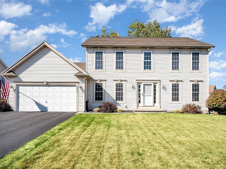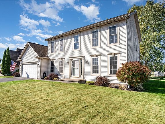 Welcome to this beautifully maintained 3-bedroom, 2.5-bath home minutes from Braddock Bay and Lake Ontario! Step inside to find new solid hardwood floors from Harman and new crown molding flowing throughout the main level and a spacious, updated kitchen featuring solid wood cabinetry, stainless steel appliances, and plenty of granite counter space...perfect for cooking and entertaining.The open and inviting floor plan includes a 2 story foyer, bright living area, convenient first floor laundry and a formal dining room. Upstairs, you’ll find three generous bedrooms, including a primary suite with a private bath and walk-in closet.