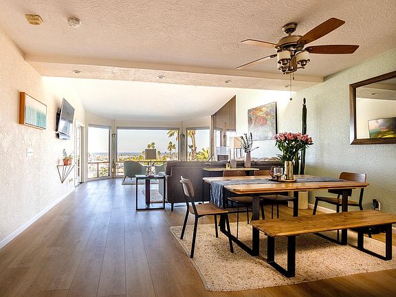 VIEWS! Beautiful, furnished two bedroom condo on the top floor facing Mission Bay, Seaworld, the ocean, and more! Directly above Sprouts grocery store, RiteAid, restaurants, bars, Starbucks and more! You will be in the ideal location with incredible sunsets every night! The unit has a large open floor plan with two bedrooms each featuring their own balcony. Gas fireplace in the living room along with a large walk-in closet off of the master bathroom. All new stainless steel appliances and a washer/dryer in unit as well as A/C in the master bed. Newly renovated master shower. The condo has been wired for all smart devices from the lights to the electronic deadbolt. The property comes with a pool, hot tub, yard, and covered BBQ area along with a community room featuring a pool table. This unit is truly a one of a kind place and is very large on the interior with great natural lighting. FURNISHED or UNFURNISHED available. Water, sewer, garbage: $50 extra.