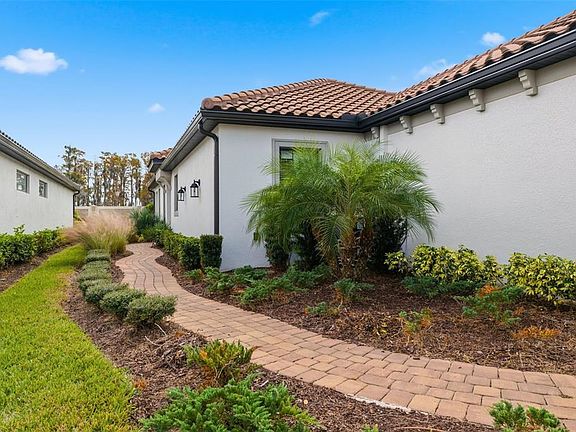Welcome to this beautifully appointed 2022 Taylor Morrison Roma model located in the premier gated community of Esplanade at Starkey Ranch. Situated on a quiet cul-de-sac lot, this home blends Mediterranean charm with modern upgrades and refined interior finishes. Step inside to an inviting open-concept layout where the main living, dining, and kitchen spaces flow seamlessly together—perfect for everyday living and effortless entertaining. The moment you enter, the natural light highlights the laminate flooring that extends through the main living areas and both bedrooms, creating a cohesive and elegant feel throughout. The upgraded tray ceilings with crown molding add a luxurious architectural touch, complemented by plantation shutters on the windows for style and privacy. A versatile flex room provides the perfect space for an office or den. The kitchen features quartz countertops, a breakfast bar, gas appliances, generous cabinetry, and a clear sight to both the dining area and living room. Both bedrooms have walk-in closets, with the primary suite featuring a spacious ensuite bath with a dual-sink vanity, a large walk-in closet with abundant storage, and a beautifully designed shower layout. Both bathrooms also showcase quartz counters and ceramic tile flooring. Additionally, the home features a dedicated indoor laundry room for convenience and functionality. Enjoy Florida living on the open lanai, perfect for morning coffee or relaxing evenings after a day spent enjoying the resort-style amenities. The home is also equipped with storm-rated windows and hurricane shutters, providing peace of mind year-round. Esplanade at Starkey Ranch offers a luxurious lifestyle with a resort-style pool and spa, clubhouse, fitness center, tennis and pickleball courts, scenic trails, and access to Starkey Ranch’s master-planned amenities. Located minutes from shopping, dining, and the Suncoast Parkway, your commute to Tampa and surrounding areas is fast and convenient. This home offers the ideal blend of comfort, design, style, and the highly sought-after Esplanade lifestyle.