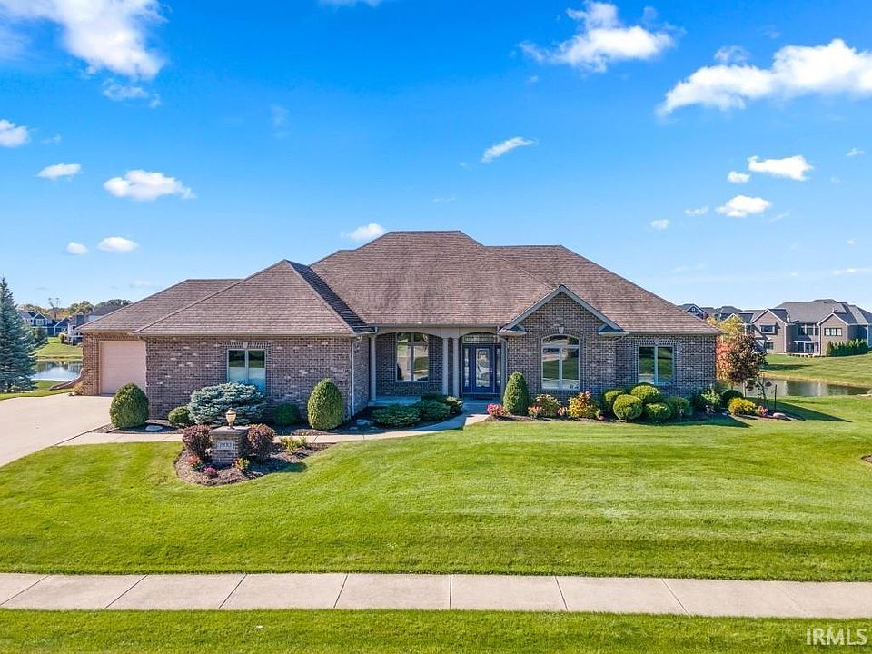Welcome to this impeccably maintained custom-built ranch home, offering 4 bedrooms, 3 ½ baths, and a spacious 4-car garage. Nestled on a serene pond in Grey Oaks, this stunning property is ready for its new owner! As you approach, the covered front porch invites you into a welcoming foyer with soaring 10’ ceilings. The open concept design seamlessly connects the dining area and great room, creating an ideal space for entertaining and family gatherings. The great room is bathed in natural light and features 11’ ceilings, crown molding, and a striking three-way fireplace that also warms the kitchen and nook. The dining room exudes elegance with its trey ceiling, crown molding, and stately pillars. The chef’s kitchen is a culinary delight, boasting custom cabinetry, granite countertops, a tile backsplash, a walk-in pantry, breakfast bar, double ovens, double microwaves, trash compactor, beverage fridge, electric cooktop and all of the appliances remain. Adjacent to the kitchen, the nook leads to a screened-in porch with breathtaking pond views. Retreat to the luxurious master suite, complete with a trey ceiling and an exquisite master bath featuring a corner Jacuzzi tub, double vanities, a large walk-in Freedom tile shower, and a massive walk-in closet with closet tamers organizers and drawers. Two additional bedrooms on the main level are generously sized and share a full bath. The 4-car garage is a car enthusiast’s dream, with an epoxy floor, utility sink, cabinets, and separate stairs leading to the basement. The walkout basement is an entertainer’s paradise, featuring a large patio area overlooking the pond, a spacious rec room with a full kitchen, a theater room with projector and screen, a workout room, a 4th bedroom, a full bath, a den with built-in desk and cabinetry, a workshop, and a storm shelter. Additional highlights include six-inch walls, an association pool, an irrigation system and pump utilizing the pond, a central vacuum system, and a comprehensive security and camera system. This beautiful home is a rare find and won't last long. Schedule your tour today and make this dream home yours!