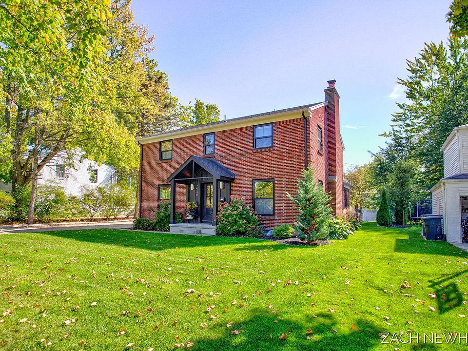 East Grand Rapids home recently renovated from the top down. Not one detail was missed in this gorgeous 4 bed 2.5 bathroom home with 2 stall garage and private backyard. The floor plan features a large living room with crown molding and a stately fireplace, main floor office, plus an open concept dining and kitchen space. The kitchen and dining has a custom trim detail on the walls that accents the modern designed kitchen with quartz counter tops, center island, natural stained wood hood plus a walk in pantry. The main floor also has a family room with accent ceiling beams and French doors leading to the backyard. The upstairs features 4 bedrooms including a primary suite with private attached bathroom