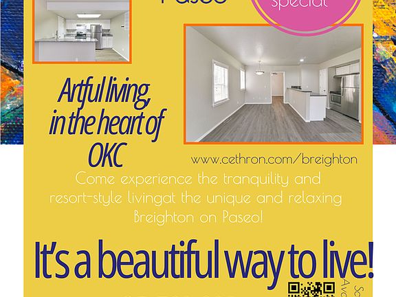 Da Vinci- Half off first months rent + $250 deposit Move In Special for October! - $250 Deposit + 50% off first months rent for all approved leases signed by October 31st! Come join us here at The Breighton on Paseo and enjoy these specials as well as Reduced Renovation Rates while the dust settles from our clubhouse remodel! **Coming soon: upgraded fitness center, laundry center and community area