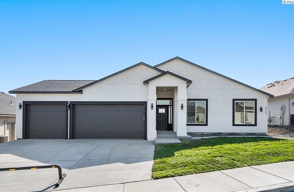 MLS# 288789 Beautiful new 1-story stucco home in popular Apple Valley community!1498 sf, 3 bdrm, 2 baths, 3 car garage. Open and light filled floorplan with high ceilings - 11ft high in living and entry and 9ft ceilings in the rest of the home. Well-appointed kitchen with large island and gas range, beautiful fireplace with shelving details on both sides, allergy friendly LVP flooring throughout the home, inviting master retreat with double sinks, tiled shower and walk-in closet, insulated and finished spacious 3 car garage w/door opener, covered patio and welcoming backyard completed with underground sprinklers and sod. This home is planned for the completion at the end of December 2025.Shown pictures are of the similar previously built home.