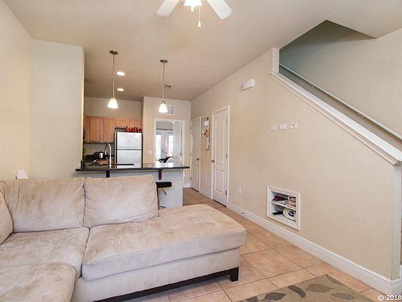 2-story townhouse condo close to UF, Shands, Law School, & Vet School. Open kitchen with granite counters, faux stainless appliances, wood cabinets & large pantry. Tile in kitchen, downstairs office, living room & bathrooms. Two master bedrooms upstairs each with their own private bathrooms, plus a study downstairs with a FULL 3rd bathroom & closet! Downstairs study can serve as a 3rd room or makes for a great office! Large porch screened in with outdoor storage closet. Concrete block between each unit for quiet sound barrier. Pool, 2 direct bus stops to UF nearby, & just a short drive or bus ride to campus or Shands. Close to UF and Shands!