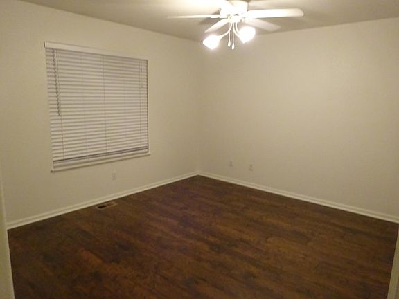 Beautiful gas fireplaceFenced yardBedroom ceiling fansCentral heatWood floorsWhole house fan