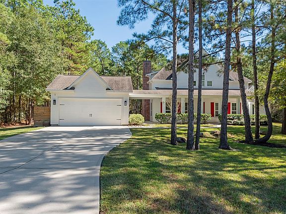 Nestled on a beautiful 1.5-acre wooded cul-de-sac lot, this inviting country home offers space, privacy, and community amenities just minutes from town conveniences. Inside, the open-concept design seamlessly connects the family room, dining area, and kitchen, creating the perfect setting for gatherings. The kitchen features granite countertops, an oversized island with seating, stainless steel appliances, double ovens, and a farmhouse sink. The home offers two bedrooms downstairs, including a private primary suite, plus a second bedroom with its own ensuite bath—ideal for guests or multi-generational living. Upstairs are two additional bedrooms connected by a Hollywood bath. Outside features include an oversized garage, covered patio, and manicured landscaping. This quiet, amenity-rich neighborhood features three stocked ponds, picnic and playground areas, a community pool with covered pavilion, and equestrian facilities including horse trails and arena.