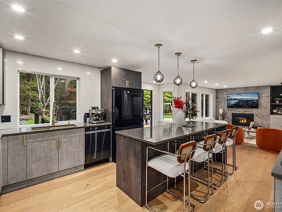 Beautifully remodeled Remington estate on nearly an acre, backing to a tranquil greenbelt. With almost 3,000 sq ft, this residence feels brand new with updated finishes, appliances, and materials throughout. The thoughtful layout includes 4 bedrooms, 2.5 baths, a private office, bonus room, and a light-filled gourmet kitchen ideal for gatherings. The spa-like primary suite features heated floors and a spacious walk-in closet. Step outside to a new 1,200 sq ft deck overlooking a spacious backyard with playground, sprinkler system, and shed. Car lovers will value the 1,500 sq ft 6-car garage with heated shop, storage, and finished attic. With a newer roof, RV parking, and a premier golf course setting, this home blends elegance and comfort.