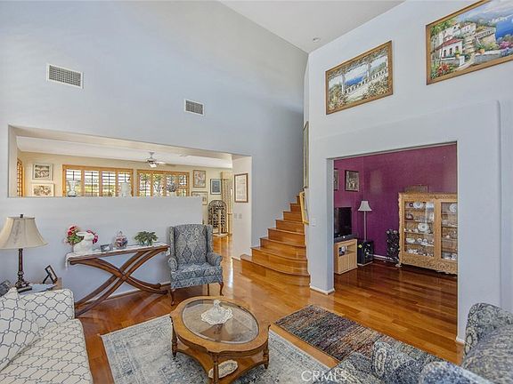 Tucked away on a quiet cul-de-sac in Canyon Country, this spacious 3-bedroom, 2.5-bath home PLUS DEN and LOFT has everything you’re looking for—and more! With over 2400 sq ft of living space, there’s plenty of room to spread out, relax, and enjoy. Step inside to high ceilings, durable and stylish hardwood flooring and plantation shutters throughout the downstairs. Enjoy an open floor plan that connects the formal living and dining areas to the updated, spacious eat-in kitchen—complete with newer appliances. The main level also includes a versatile den (potential 4th bedroom). Upstairs, the loft (another potential bedroom) makes a perfect home office, game room, or cozy hangout space, along with 2 spacious additional bedrooms. The primary suite is bright and comfortable with its own private bath. Outside and you’ll find one of the best features: a premium, private lot with only one neighbor on one side and no rear neighbors! Enjoy your very own beautiful mountain views - it's the perfect spot to enjoy morning coffee or unwind after a long day. This home is move-in ready and close to schools, parks, shopping, and more. Come take a look—you’ll feel right at home!
