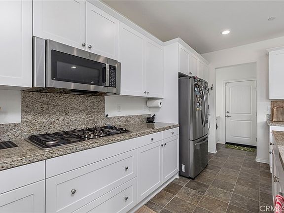 Welcome to your dream home in the highly desirable Heritage Lake community! Built in 2021, this stunning Lennar Hampton Plan 3 is in excellent condition and perfectly situated on a peaceful cul-de-sac. Spanning 2,604 Sq Ft, this versatile home boasts 3 bedrooms PLUS a Den/Office (easily converted to a 4th bedroom) PLUS a spacious Upstairs Loft. As you enter, you are greeted by a light and bright foyer leading to a convenient downstairs bedroom and full bathroom with a walk-in shower. Perfect for guests or multi-generational living. The open-concept layout flows into the main living space, connecting the spacious living room, dining area, and the gourmet kitchen. The kitchen is a chef's delight, featuring white shaker-style cabinets, gleaming granite countertops, stainless steel appliances, a large island, and a single-basin undermount sink. Adjacent to the living room, double doors open to the versatile Den/Office which would be a perfect work-from-home space or 4th bedroom. Upstairs, you'll find the oversized Loft, a dedicated Laundry Room with ample storage, and two additional bedrooms, including the private Primary Suite. The sun-drenched primary bedroom offers an ensuite bath with dual sinks, a luxurious soaking tub, and a huge walk-in closet. Step outside to your beautiful, professionally landscaped backyard featuring a concrete patio, enjoy the low-maintenance turf, and pick fresh fruit from your mature trees (lemon, lime, orange, pomegranate, guava, and crabapple). The Heritage Lake lifestyle is second to none, featuring a 25-acre lake with catch-and-release fishing, two Junior Olympic-size pools, a spa, a 20-acre Sports Park, walking trails, a clubhouse, and numerous parks all with an incredibly Low $77 monthly HOA fee! Elementary and Middle Schools are conveniently located within the community too! New neighborhood shopping center McCall Square is conveniently located at McCall Blvd and Menifee Rd across from Heritage Lake. Don't miss your chance to own a modern cul-de-sac home in this popular, amenity-rich community in the growing City of Menifee!