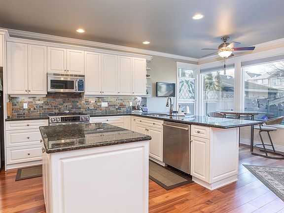Craftsman Family home ready for you to move right in. Close to shopping, recreation, parks and easy access to hwy. 99. Bright home with efficient floor plan, impressive millwork, coffered ceiling and hardwood floors showcase the quality. Downstairs has its own entrance, recreation room, bedroom and full bathroom easy to suite. Perfect for Nanny, Granny or student returning home. West facing backyard has Trek deck leading to a double car garage with lane access.