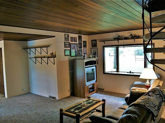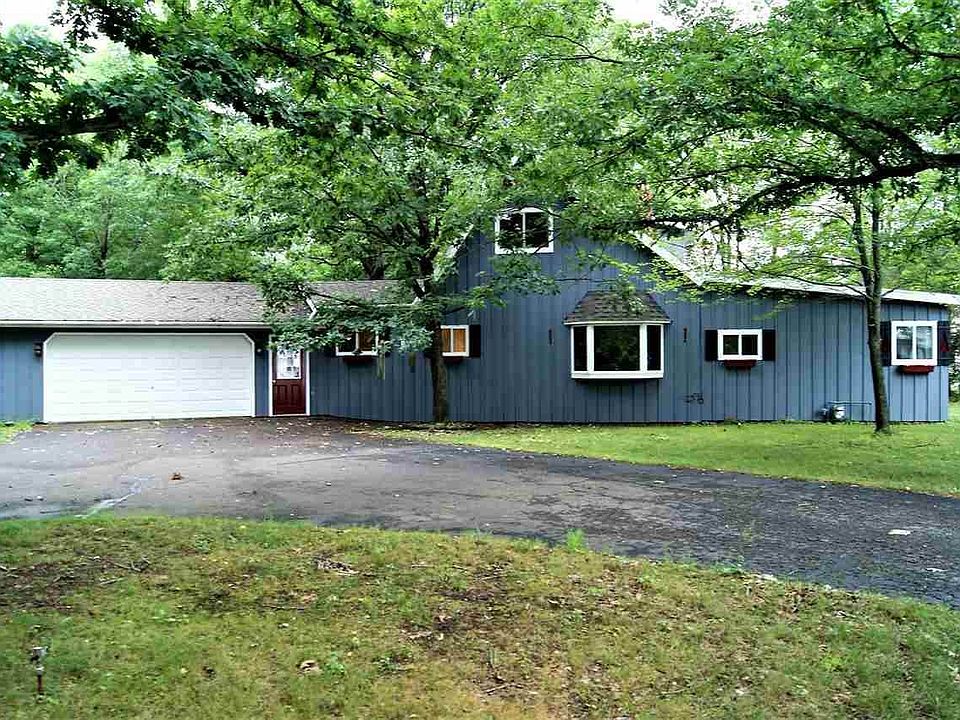Nestled into the large wooded lot, you can enjoy country living with a city address and convenience. This three bedroom home has a spacious and efficient floorplan with an impressive stone fireplace and walkout balcony from the upper level bedroom. Two car attached and two car detached garages, plus pole building provide plenty of space for your storage and workshop needs.